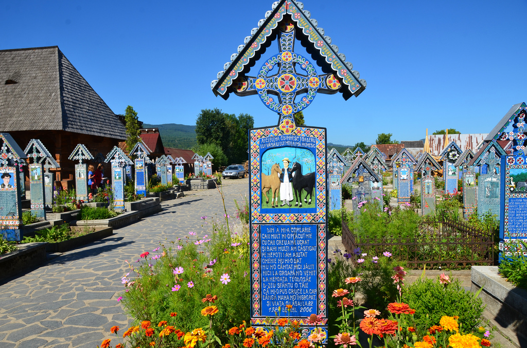 In the fact, according to local tradition, death is welcomed with the bright colors of wooden handicrafts tombstones, and most of them tell with satiric epitaphs some episodes of the life of the deceased, in an absolutely funny way… because in this village death is considered a cheerful start and not a sad end…