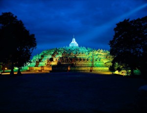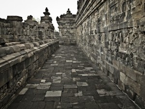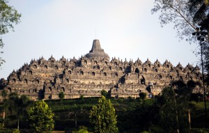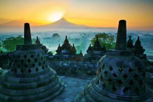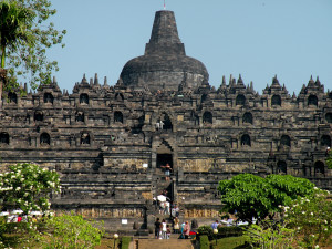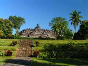 Located in central Java, surrounded by marshes turned into rice fields and tropical vegetation, on the tops of a small hill, there is the archaeological site of the Buddhist Temple of Borobudur.