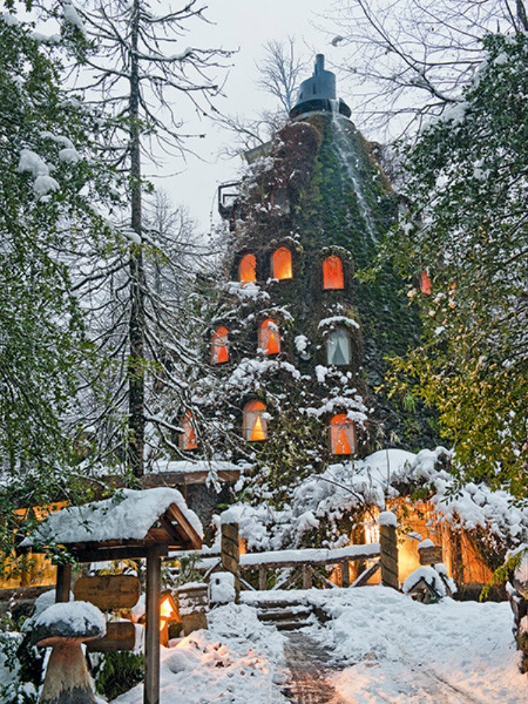 The Huilo Huilo reserve is not just known for being home to a spectacular wildlife, but this reserve hides a strange and fascinating hotel, built right in the heart of the forest: Montaña Mágica Lodge.