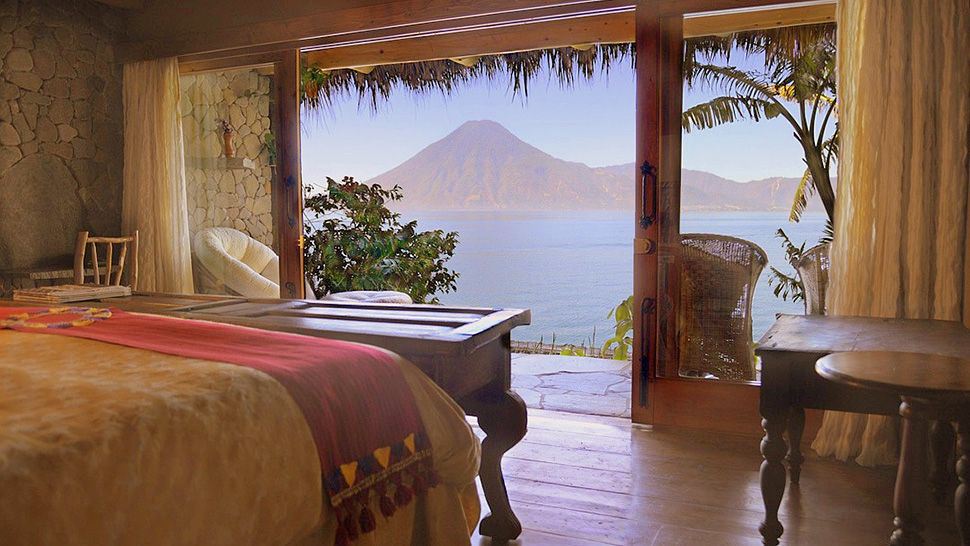The Laguna Lodge is positioned on the lakeshore of Lake Atitlan, and it is nestled in its own natural reserve. This beautiful ecolodge offers striking panoramas of the azure waters, and of a trio of volcanoes. The lodge is only reachable by boat.