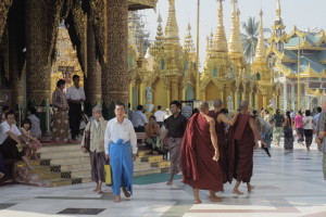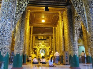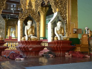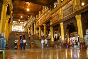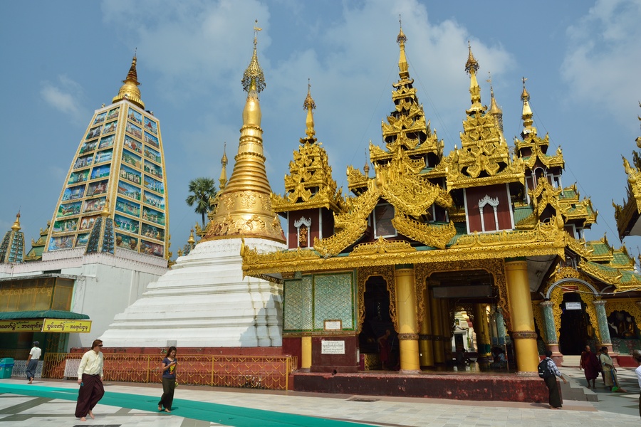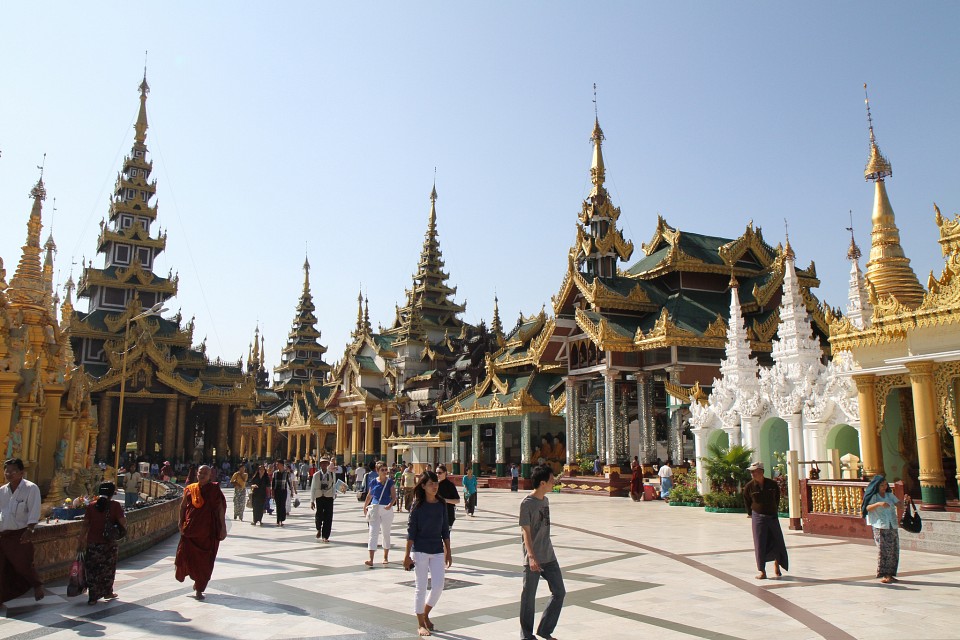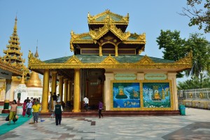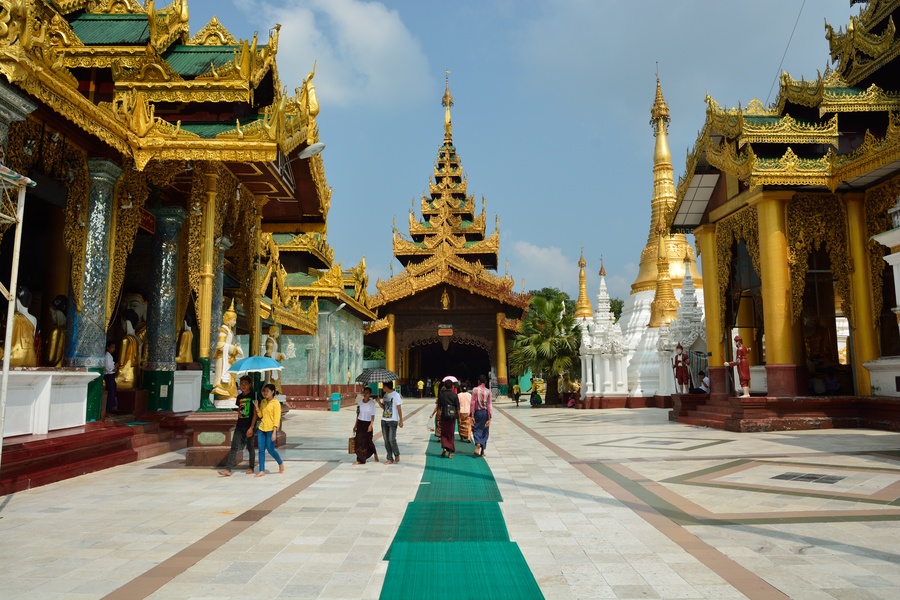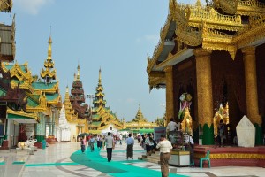 The Shwedagon Temple complex, commonly known as the Shwedagon Pagoda, is actually a sort of mini-city consists of many mini-pagodas, Buddha statues and temples on which the central pagoda dominates, it’s about one hundred meters high and almost completely laminated in gold!