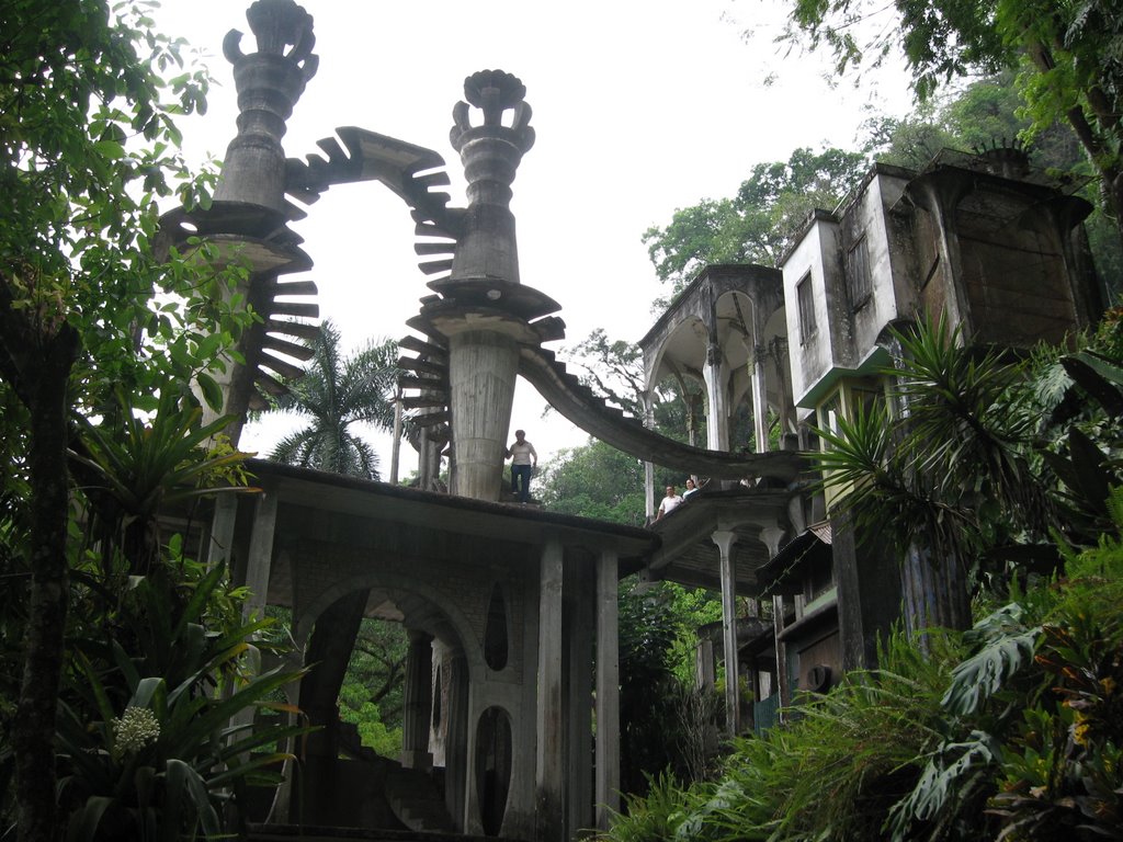 The result was an incredibly surreal complex, today it survives in the forest, forgotten by history. It remember this sort of artistic/ecological delirium of a millionaire who was a frustrated artist because he never had notoriety despite, as a patron, he supported to their debut some artists like Salvador Dali and Picasso.