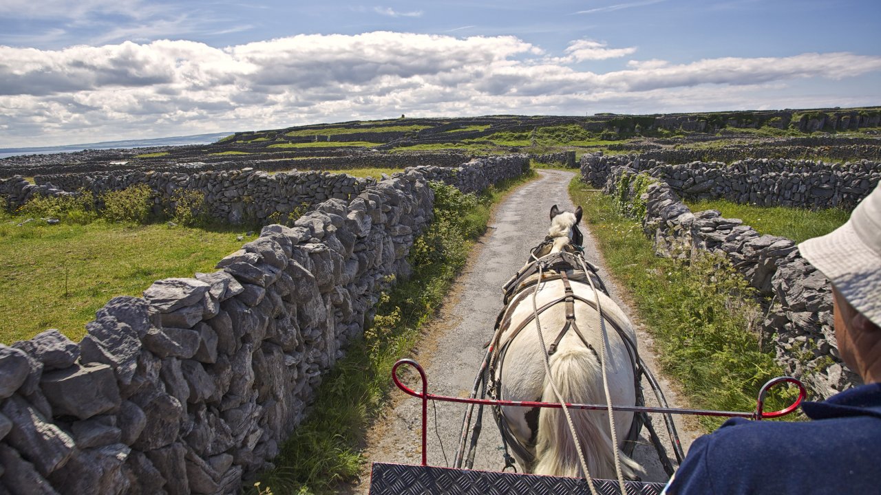 Doolin, like all the coastal centers, has its own small harbor from which it’s possible to sail, by boats of small dimensions, to reach the Aran Islands that are located just in front of the village a short distance from it. These three islands have the same atmosphere of the small village of the coast, being very small and with a total of about 1,300 inhabitants of which about 800 on the “major” island.