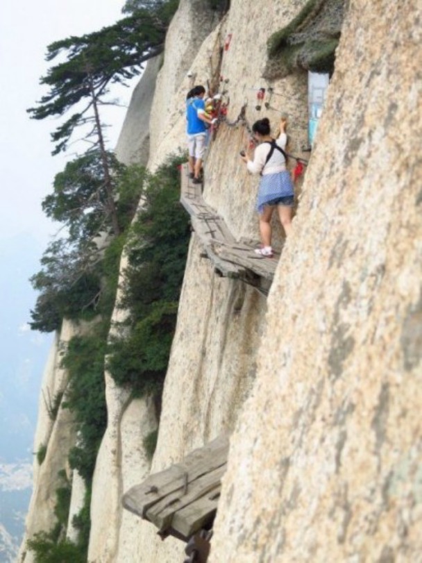 The Chang Kong Cliff Road is an unbelievable route… It ‘s really a walkway made of wood planks along a rocky peak… located over 2,000 meters above the ground!