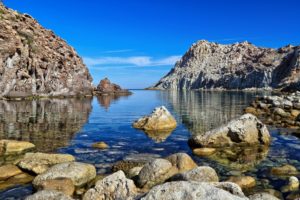 This island has a volcanic origin and 33 kilometers of coastline; it’s predominantly rocky with a variety of caves, crags, creeks and natural pools with small beaches… a joy of those who love relaxation and tranquility away from the “crazy crowd of vacationers”.