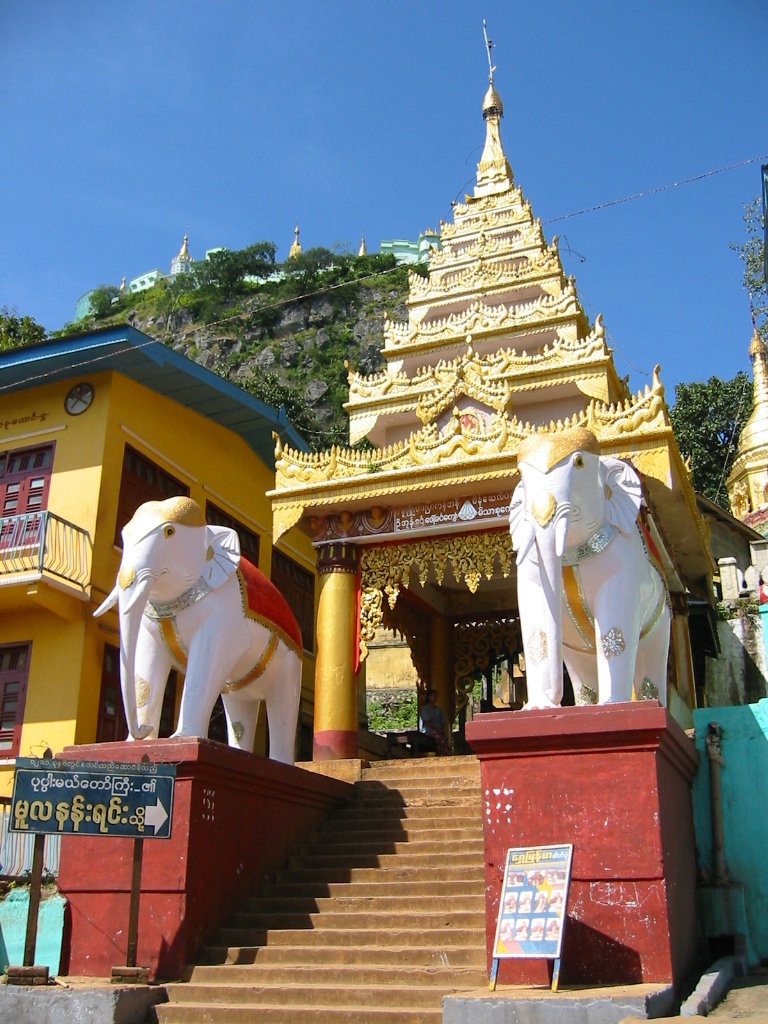 Scalare il Monte Popa, alto 1518 metri, vuol dire superare ben 777 gradini, una vera e propria piccola impresa fisica e le usanze del luogo prevedono che sia fatto a piedi nudi in onore dei “Nat”, i 37 spiriti guardiani che hanno la loro dimora nel Monastero di Taungkalat che si trova sulla cima del monte.