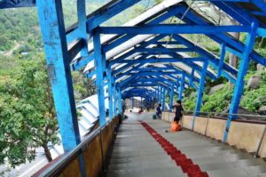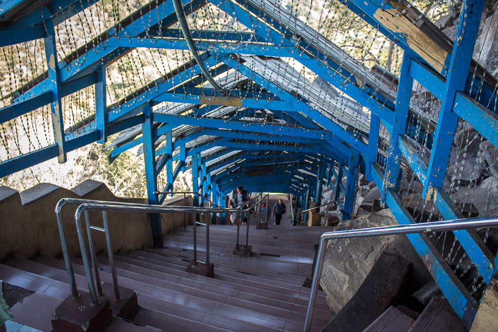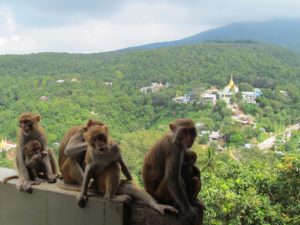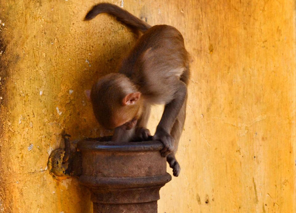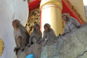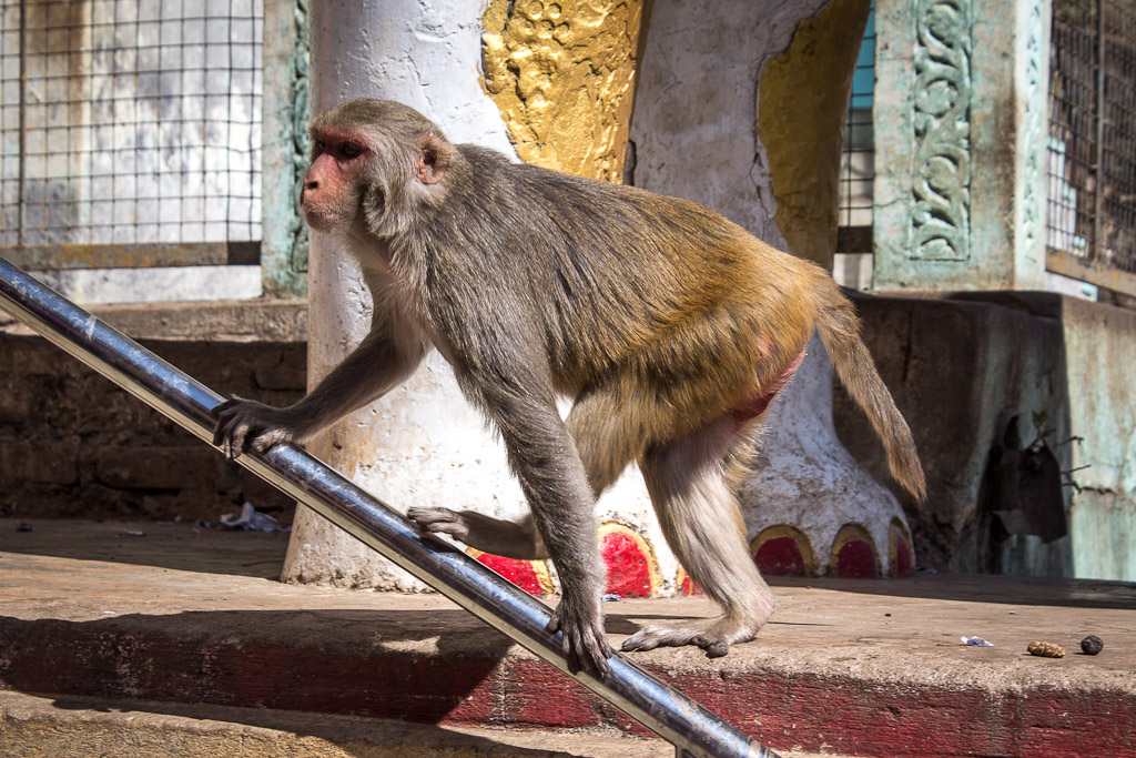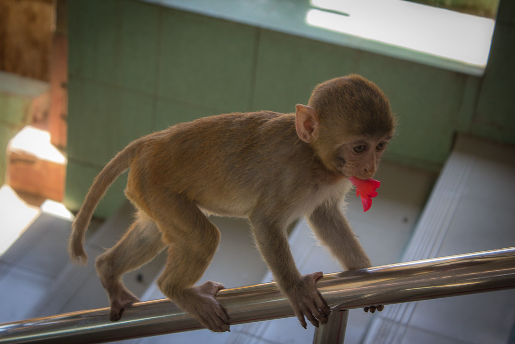 Ma il percorso dei 777 gradini è “popolato” da un grande numero di macachi, simpatiche scimmie che secondo la popolazione locale sono lì a guardia del tempio ma che spesso si avvicinano ai visitatori per sottrargli qualsiasi cosa sia da mangiare dando luogo a delle situazioni molto divertenti…