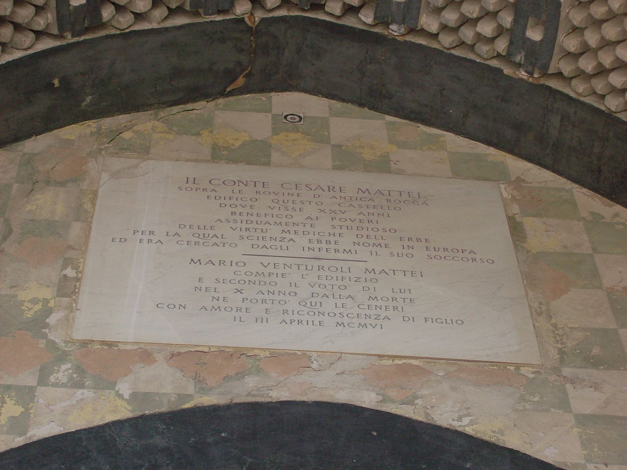 Durante tutta la sua vita il conte continuò con i lavori alla sua “Rocchetta” apportando modifiche e realizzando diversi interventi che, dopo la sua morte nel 1896, furono portati a termine dal figlio adottivo Mario Venturoli che completò questo singolare castello che sorge su di una altura posta a 407 metri sul livello del mare.